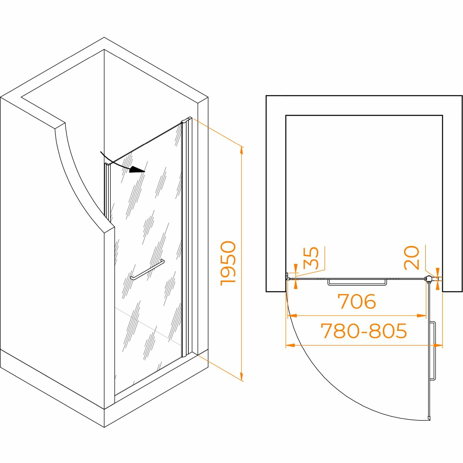 Душевая дверь RGW Passage 80 х 195 см PA-103-Gb золото браш цвет, прозрачное стекло 6 мм, EasyClean (020810308-16) интересное: