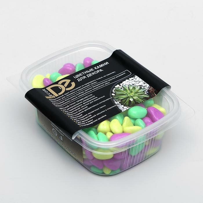 Купить Галька декоративная, флуоресцентная микс: лимонный, зеленый, пурпурный, 350 г, фр.5-10 мм