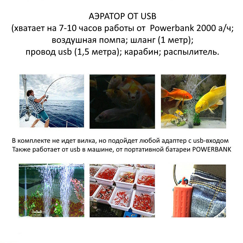 Аэратор USB (компрессор) переносной для живца и аквариума интересное: