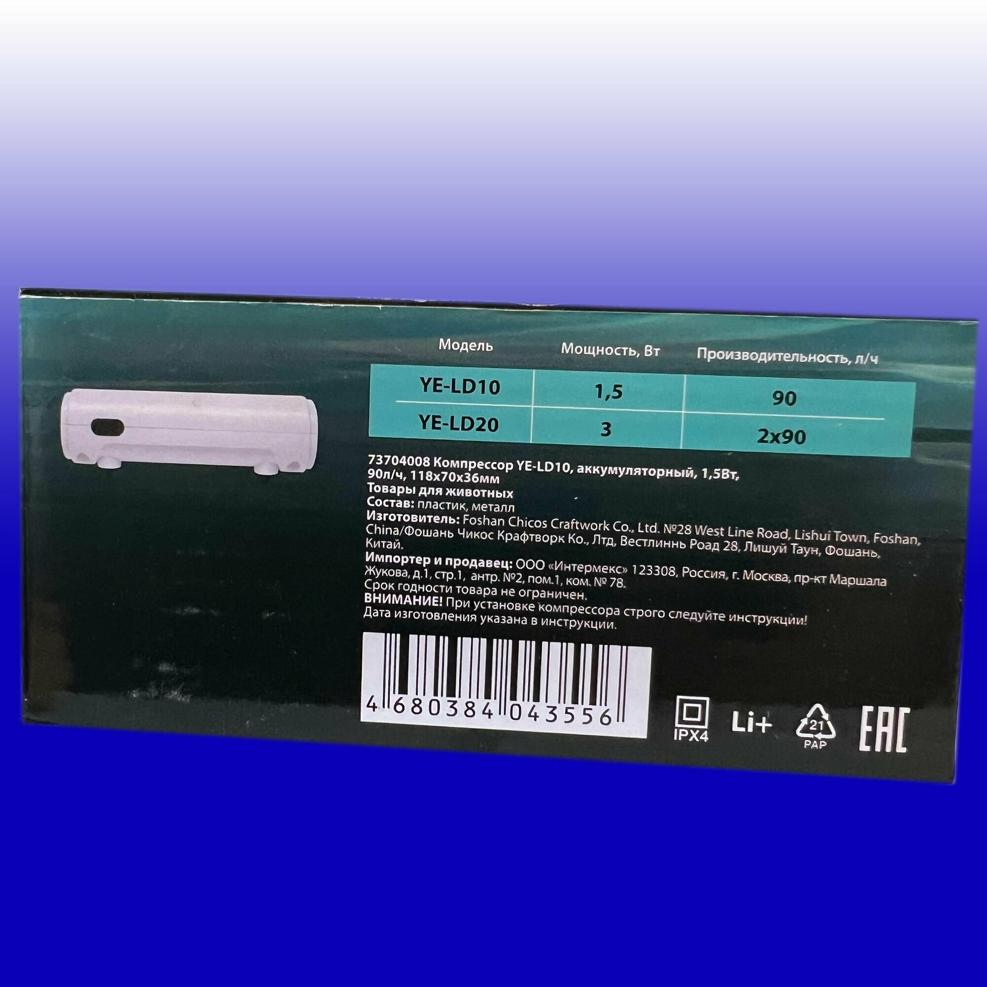 Купить Компрессор аккумуляторный Laguna Iсeberg YE-LD10 , 1,5Вт, 90 л/ч, 118*70*36 мм