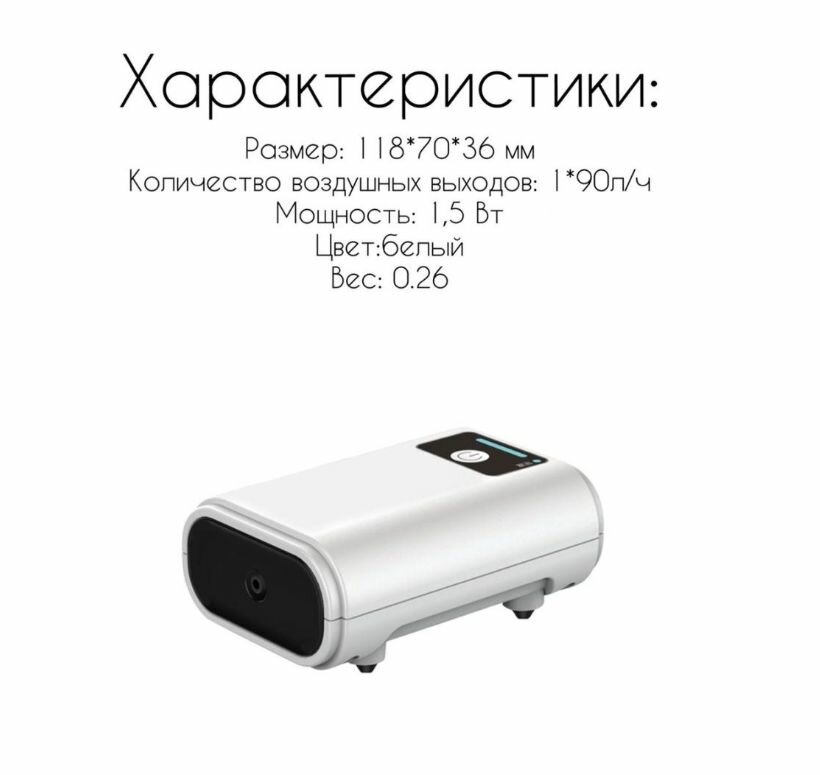 Компрессор в аквариум аккумуляторный Laguna Aqua YE-LD10 1,5Вт 90л/ч 11,8х7х3,6 сантиметров
