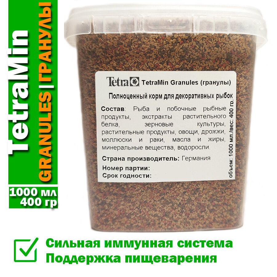 Корм для рыбок аквариумных TetraMin Granules (гранулы) объем 1000мл вес 400 грамм интересное: