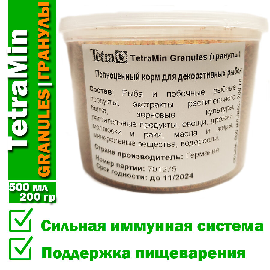 Корм для рыб TetraMin Granules (гранулы) 500мл 200гр интересное: