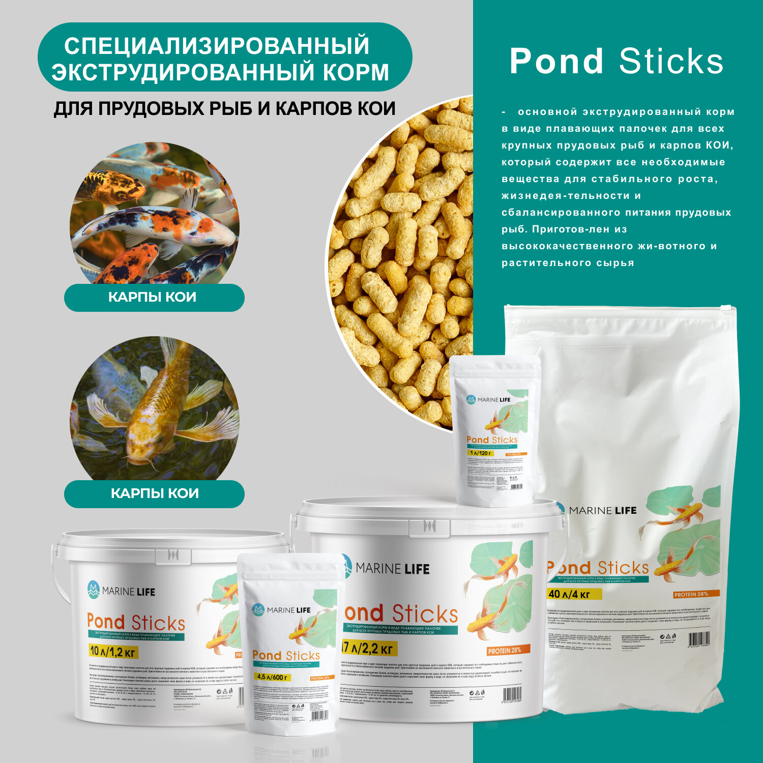 Корм для прудовых рыб и карпов КОИ, Marine Life Pond Sticks, 10Л/1,2кг интересное: