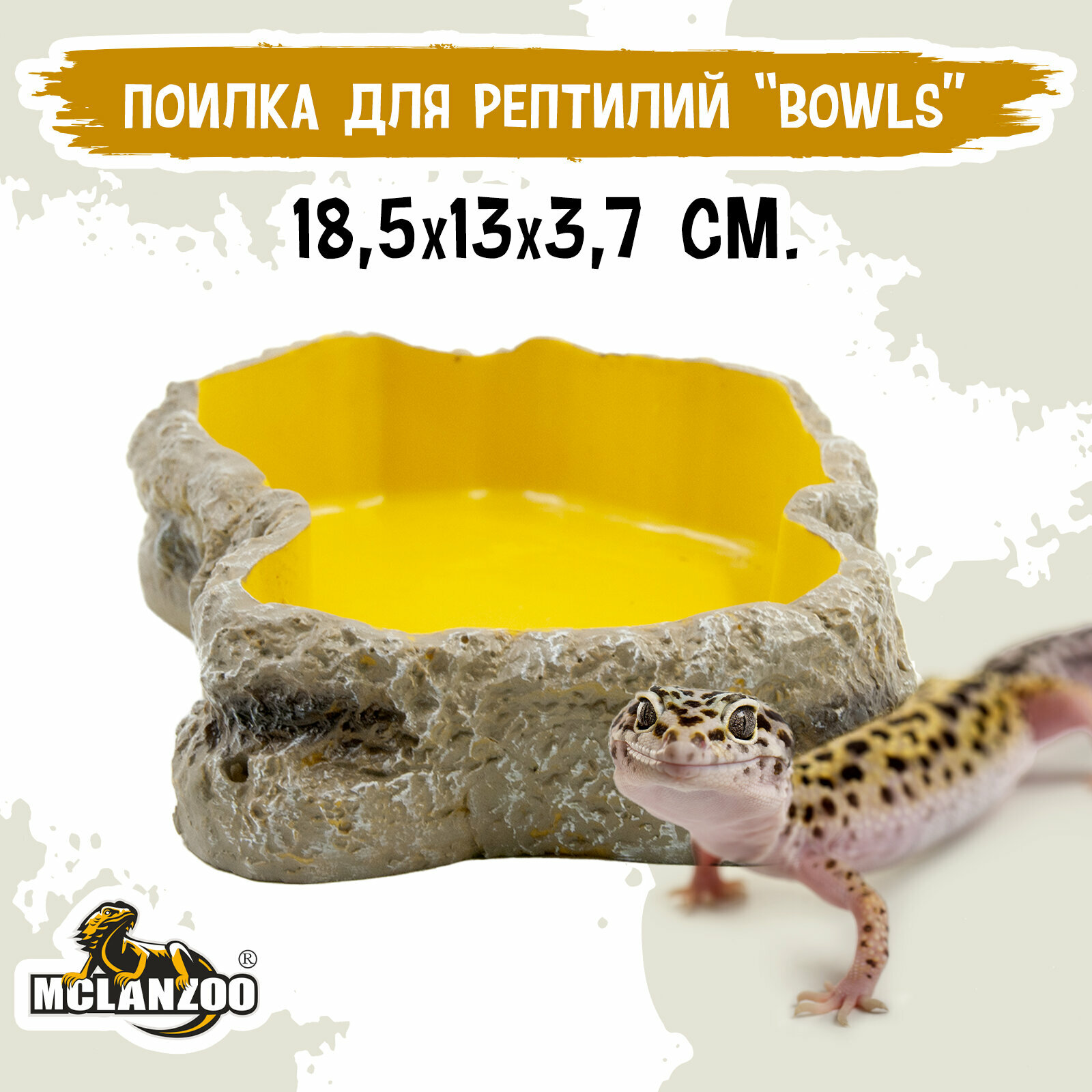 Поилка-кормушка для рептилий MCLANZOO "Bowls" камень/желтая, 18.5х13.0х3.9см интересное:
