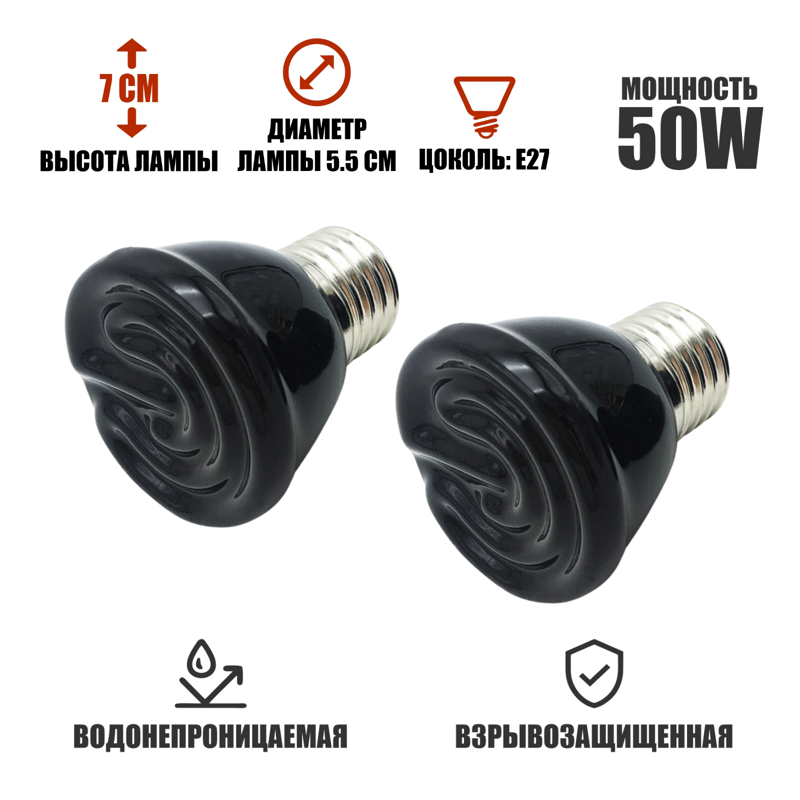 Купить Нагревательная керамическая лампа для террариума, маленькая, 50 Вт, 2 шт