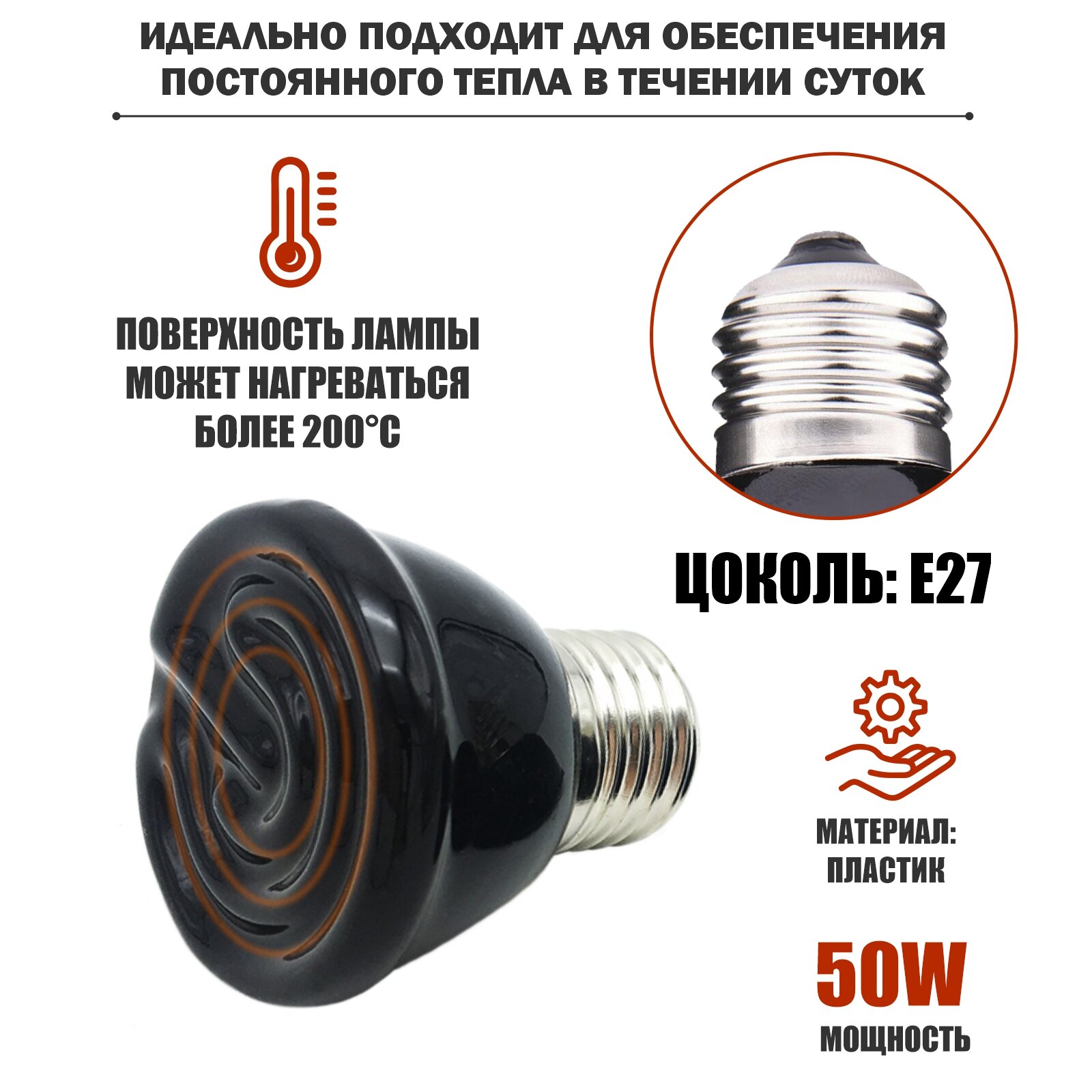 Нагревательная керамическая лампа для террариума, маленькая, 50 Вт, 2 шт интересное: