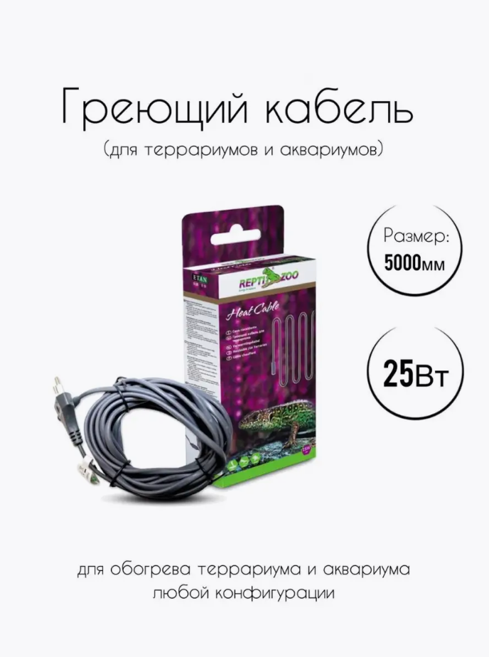 Греющий кабель Repti-zoo 5025RS, 25Вт, 5000мм интересное: