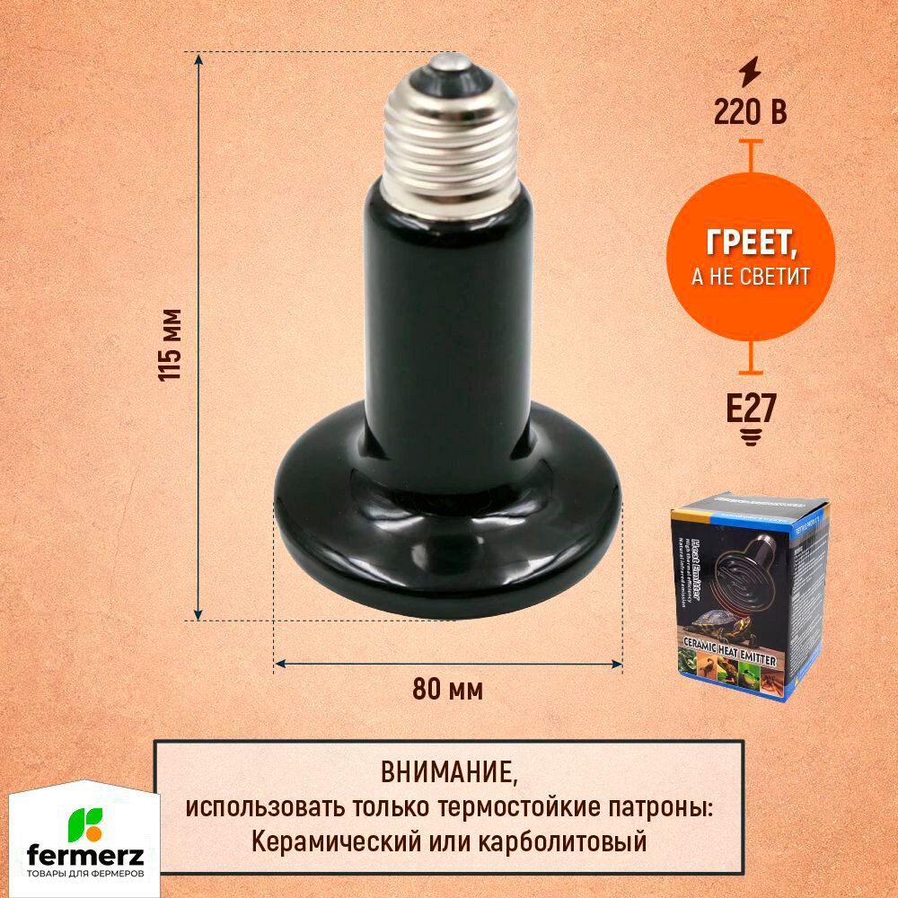 Купить Керамический нагреватель для черепах, рептилий, террариума 50 Вт / лампа накаливания инфракрасная для птиц / лампа для обогрева курятника