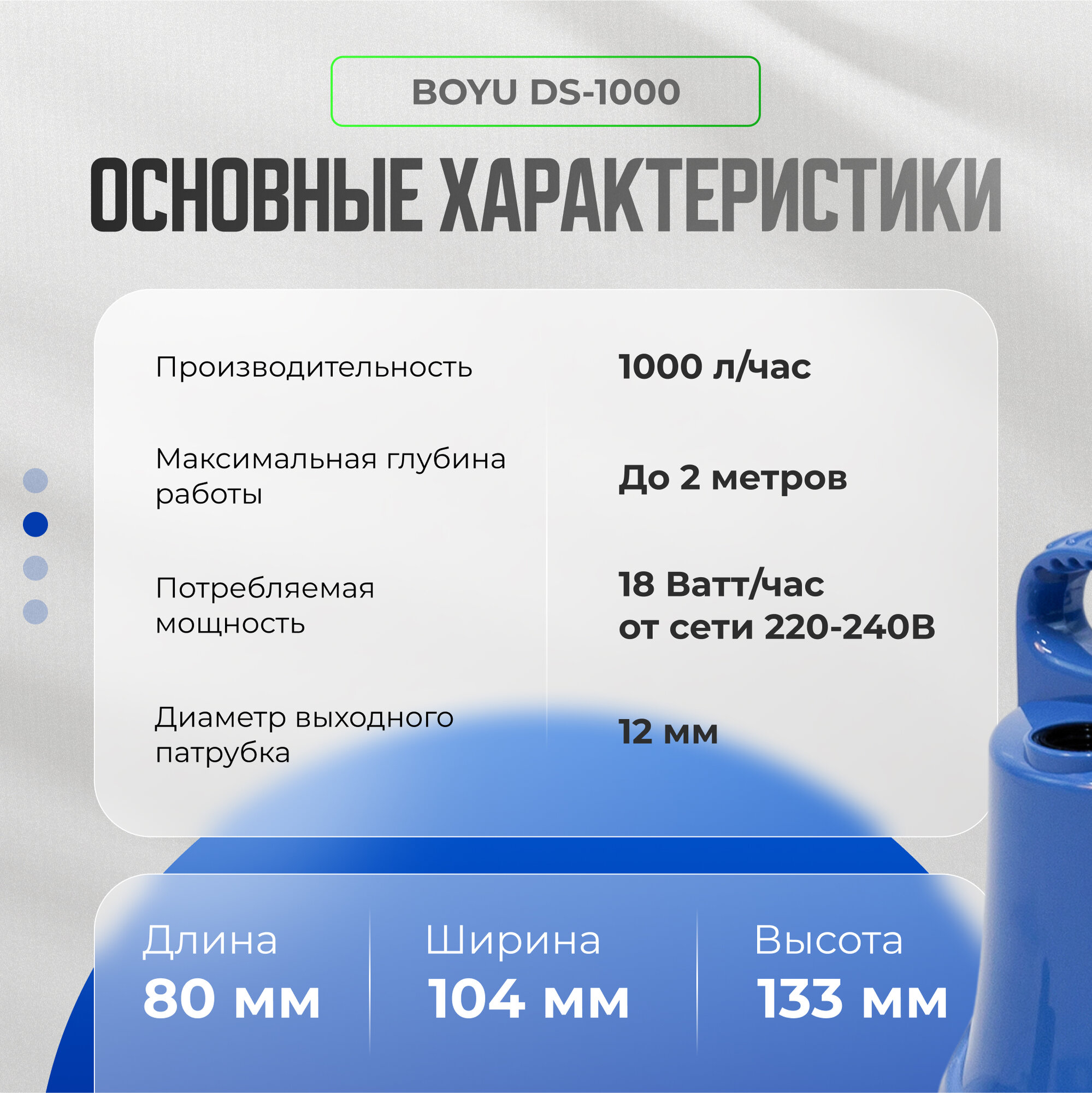 Помпа для воды электрическая BOYU DS-1000 помпа погружная аквариумная. Насос для откачки воды. интересное: