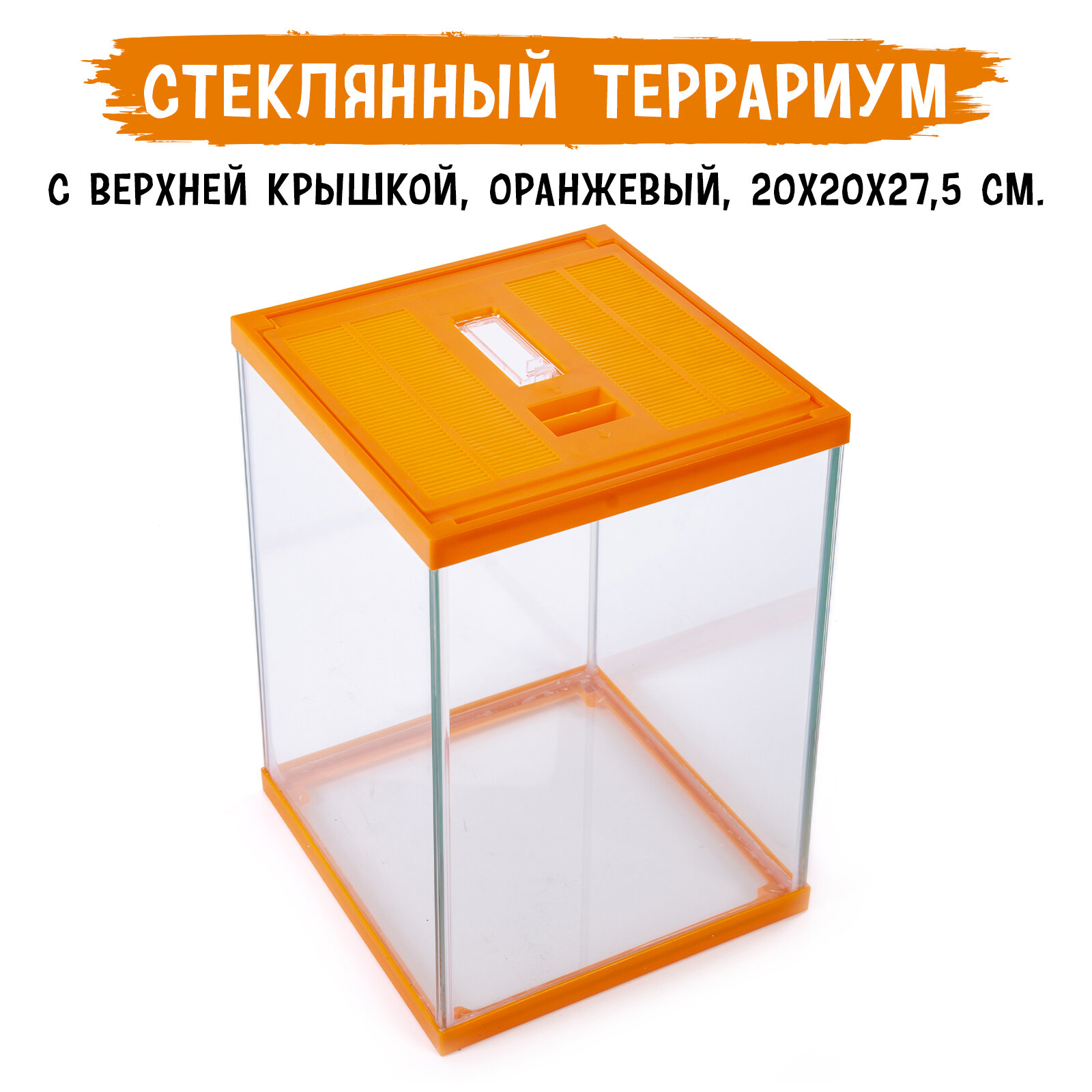 Террариум стеклянный с верхней крышкой MCLANZOO , оранжевый, 20х20хН15см