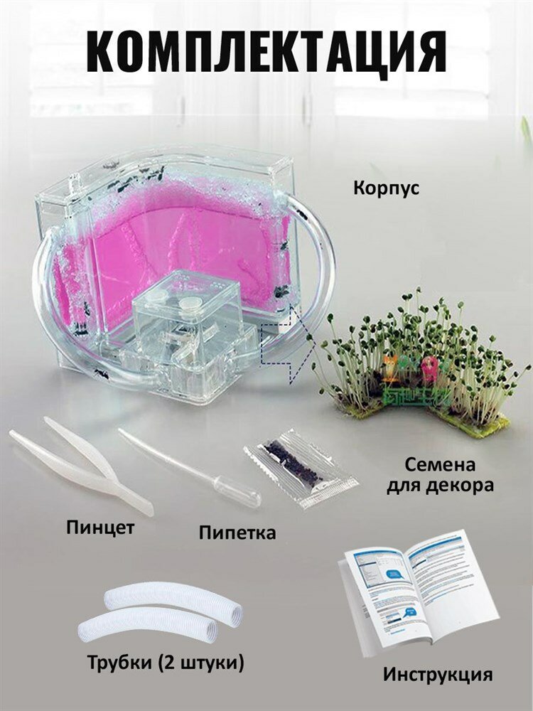 Муравьиная ферма, размер 12 см x 12 см x 12 см, домик для муравьев, розовый интересное: