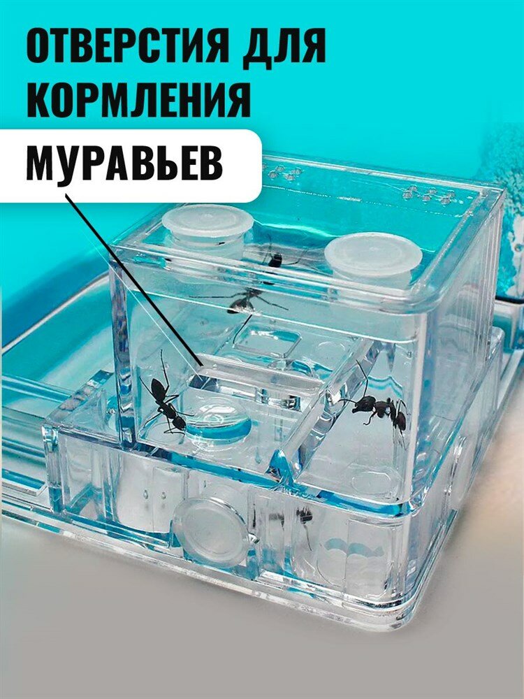 Муравьиная ферма, размер 12 x 12 x 12 см, домик для муравьев, голубой