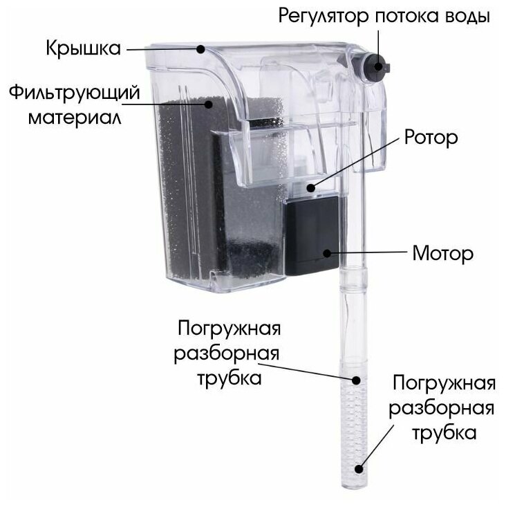 Внешний навесной фильтр для аквариума с эффектом водопада, с регулятором потока интересное:
