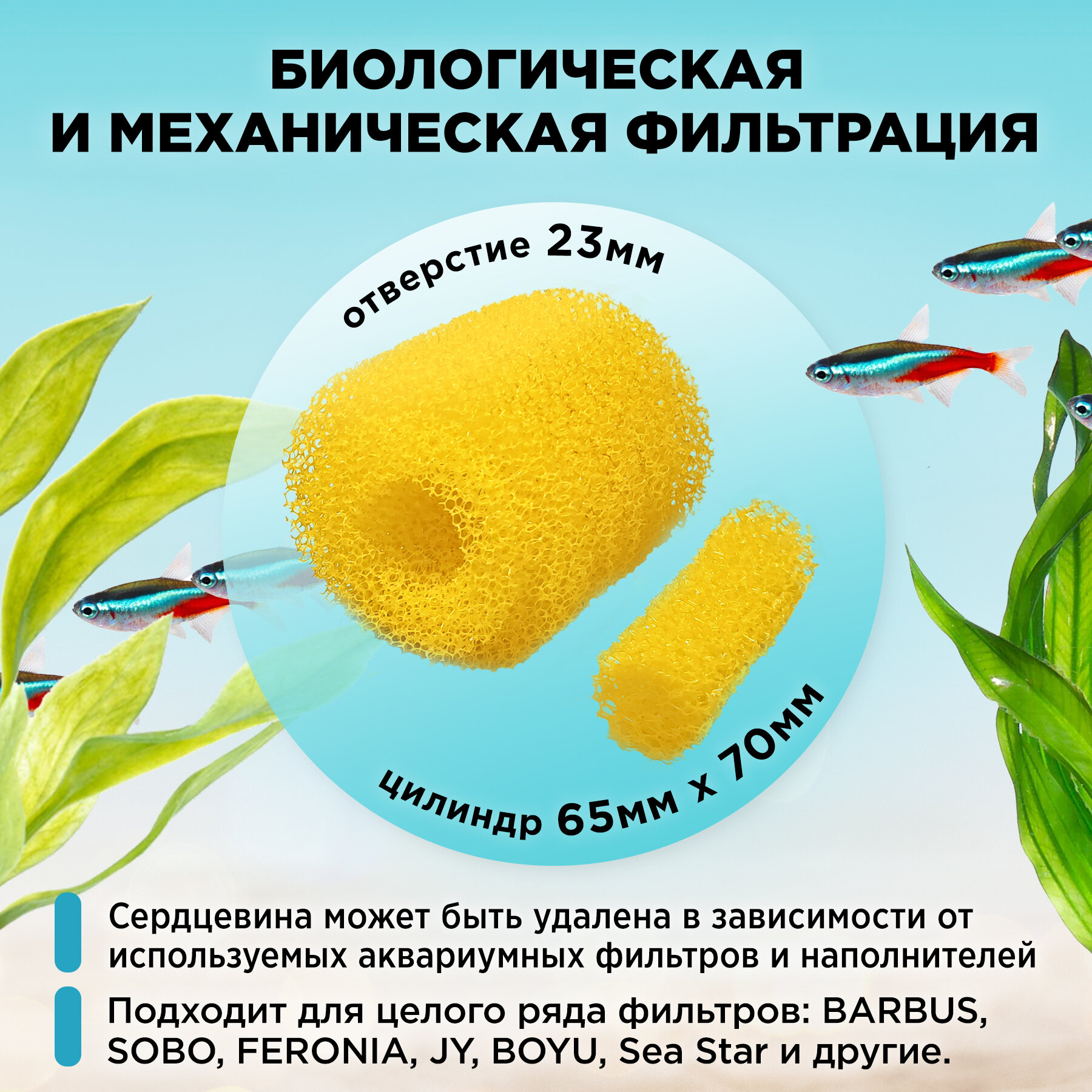Сменная крупнопористая круглая губка для аквариумного фильтра, для BARBUS, SOBO, FERONIA и других, 65мм х 70мм, цилиндр, желтая интересное: