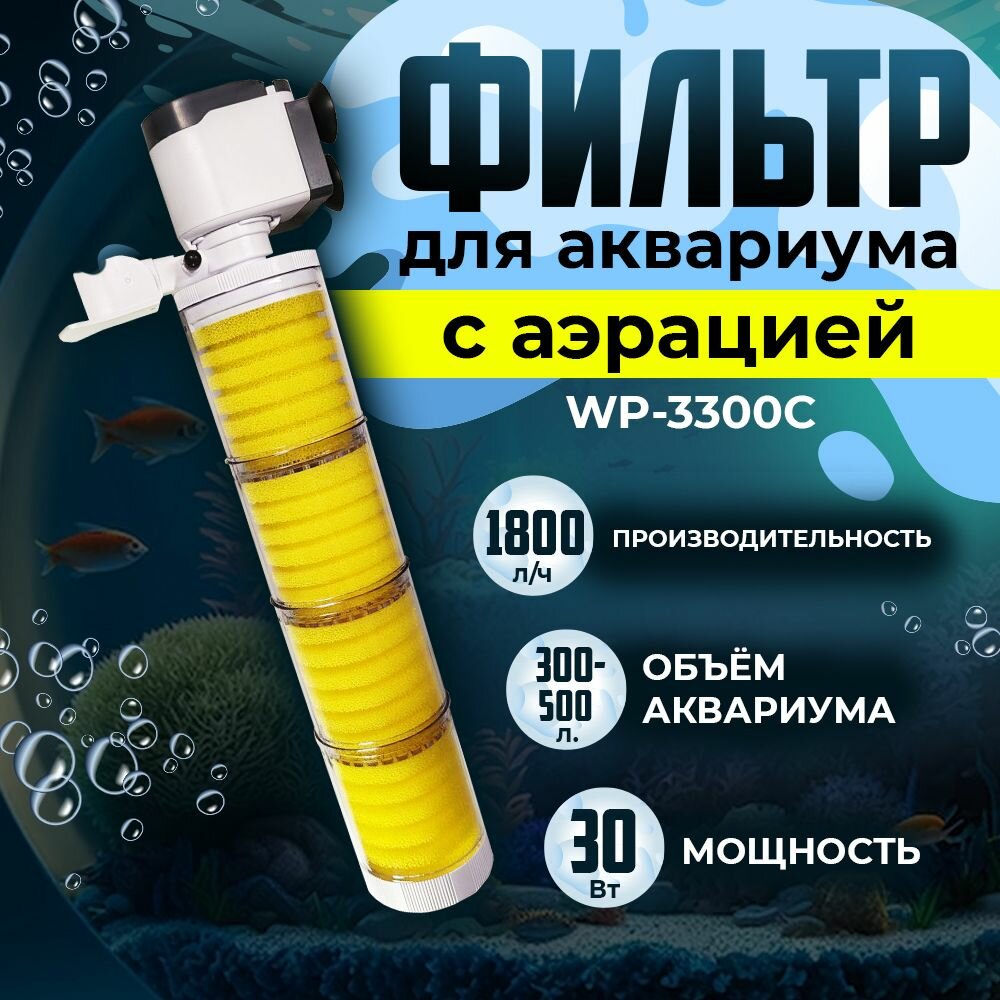 Внутренний фильтр SOBO для аквариума 300-500 литров, 30 Вт, 1800 л/ч, WP-3300C интересное: