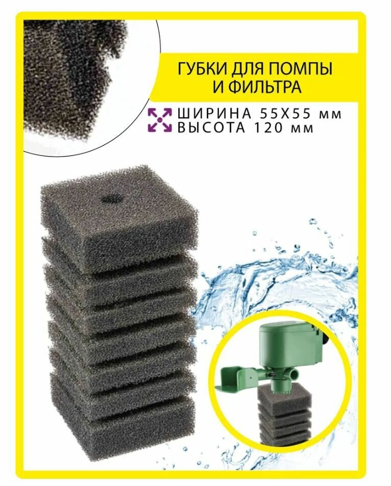 Губка для помп квадратная 70*70*140 мм Барбус