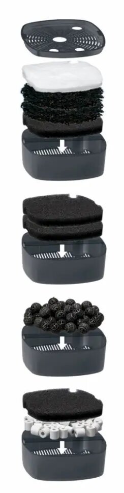 | Дополнительная информация | У Tetratec EX 700 plus встроена кнопка для подкачки воды при запуске фильтра, для заполнения его водой. В зависимости от уровня загрязнения и степени износа фильтрующие наполнители меняются каждые 6–12 месяцев. |