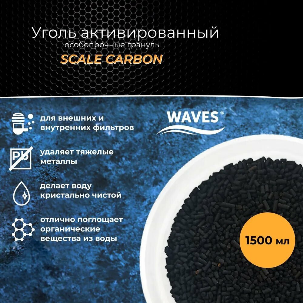 Уголь активированный WAVES Scale Carbon big, 1500 мл, гранулированный, гранулы толщиной 2 мм (длина - 2-9 мм), наполнитель для аквариумного фильтра