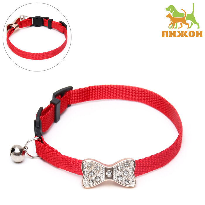 Ошейник кошачий Пижон с бубенчиком, 30х1 см, полиэстер, красный