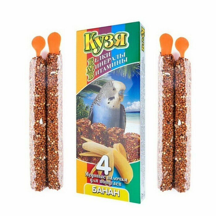 Лакомство для птиц, кузя, Палочки для попугаев, Банан (4 шт), 1 уп. интересное: