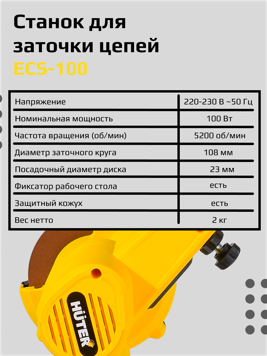Станок для заточки цепей Huter ECS-100, 100 Вт