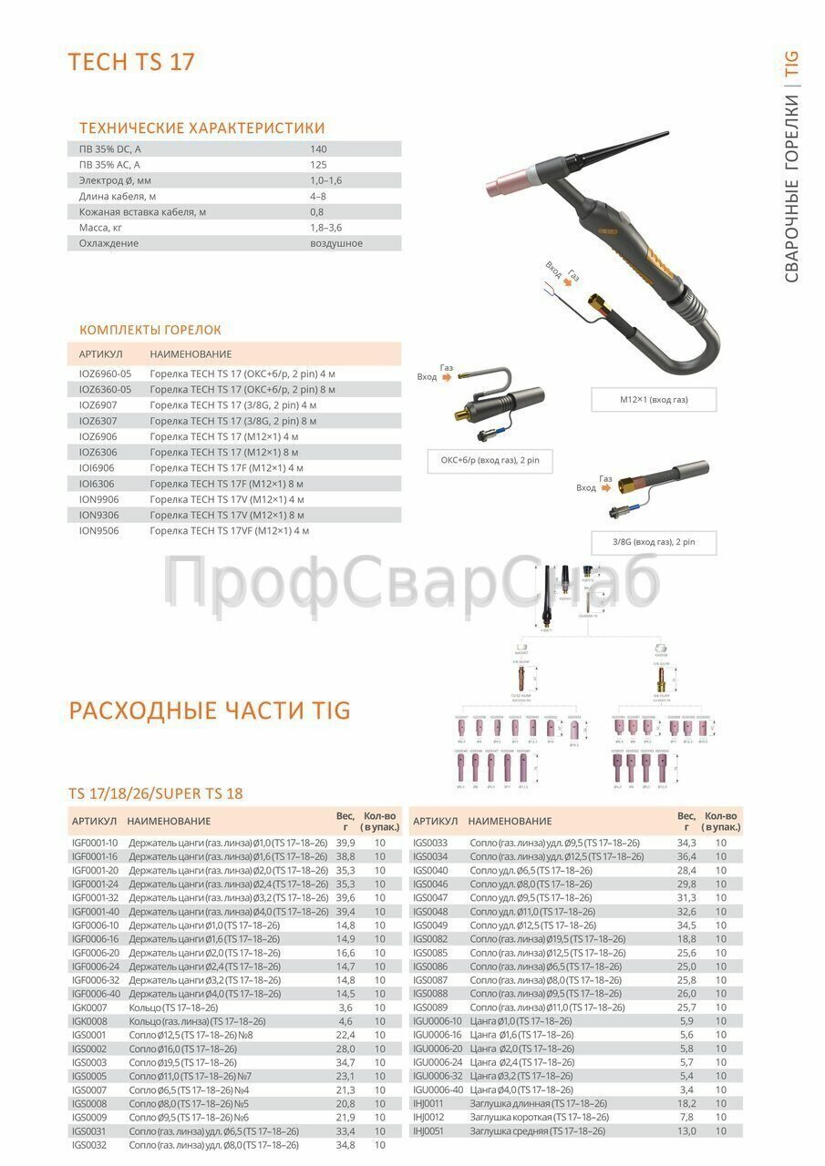 Сварочная горелка TECH TS 17 V (M12 1) , 4 м, ION9906 интересное: