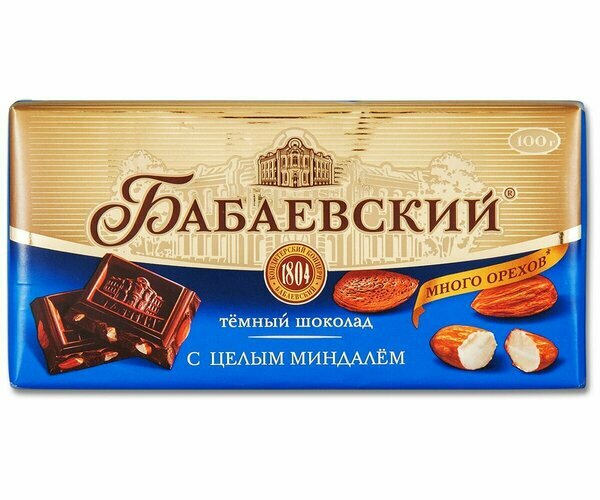 Ниже Вы можете прочитать отзывы на Шоколад Бабаевский темный с целым миндалем 1/90, ознакомится с подробными характеристиками, посмотреть интересные обзоры и фотографии на Шоколад Бабаевский темный с целым миндалем 1/90.