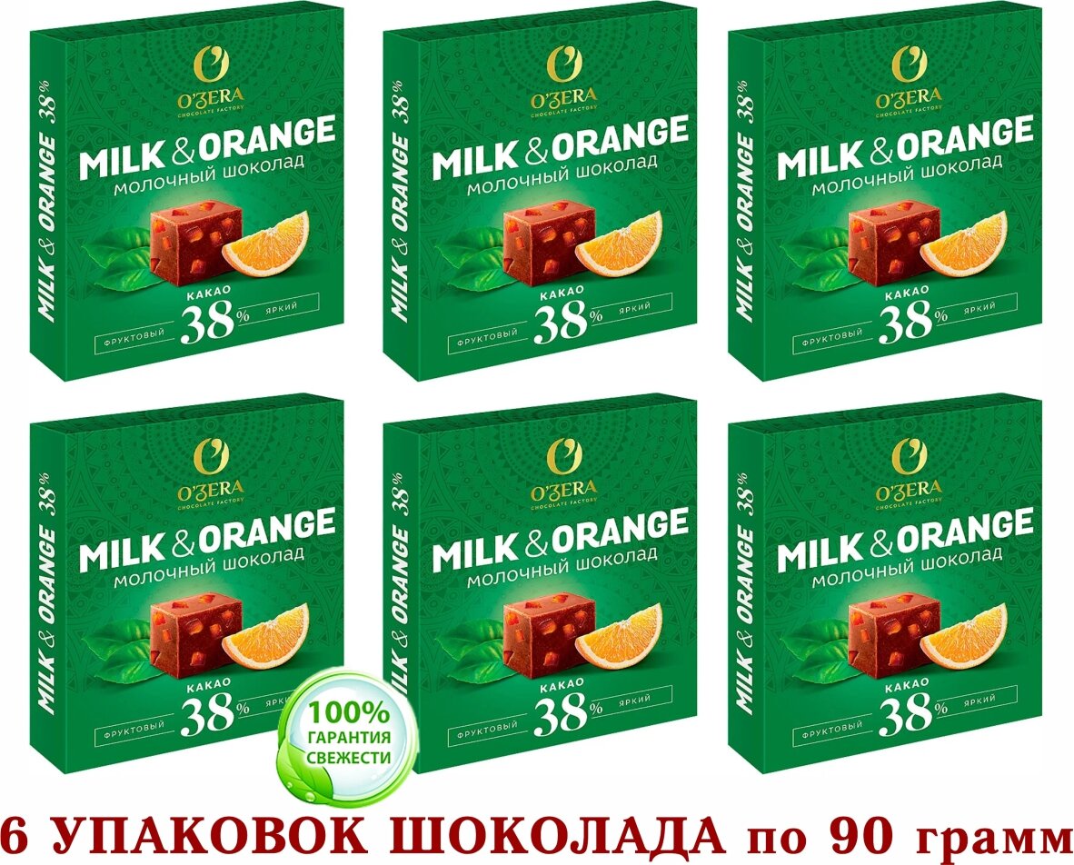 Шоколад молочный с апельсином OZera Milk & Orange, содержание какао 38 %. Озерский сувенир 6 шт. по 90 грамм