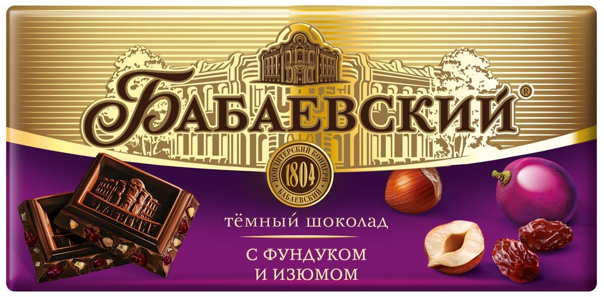Шоколад Бабаевский темный с фунд и изюмом 1/90 интересное: