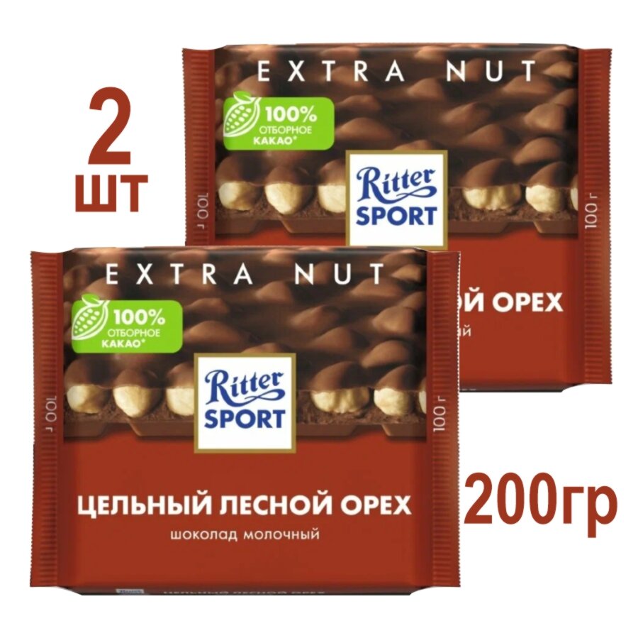 Купить Ritter Sport Шоколад молочный с цельным орехом 2шт х 100 гр