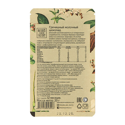 Купить Шоколад молочный NATURES OWN FACTORY Гречишный, 20г