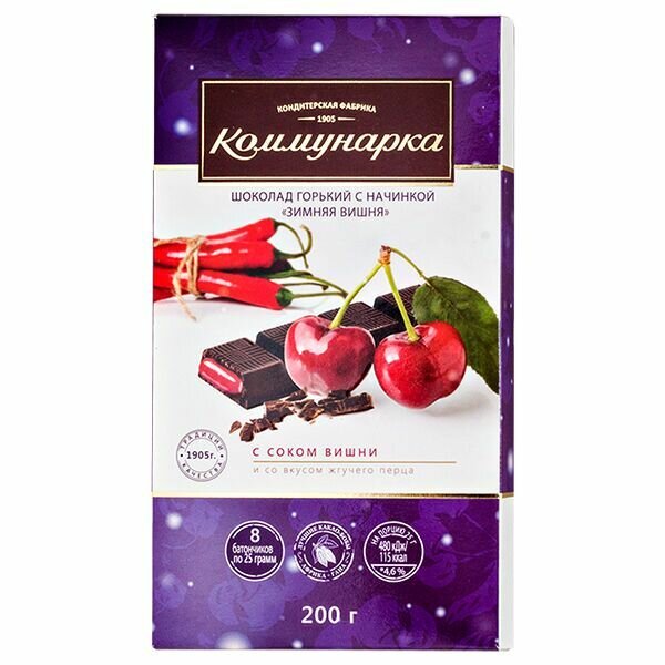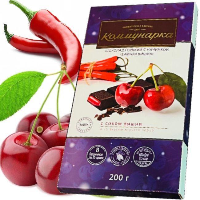 Шоколад Коммунарка горький (начинка вкус вишня и жгучий перец), 3 шт. интересное: