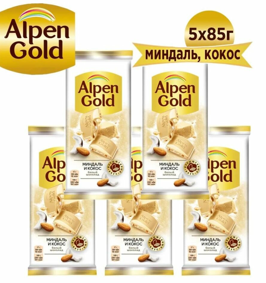 ALPEN GOLD Белый шоколад, Миндаль, кокосовая стружка, 85 гр - 5 шт интересное:
