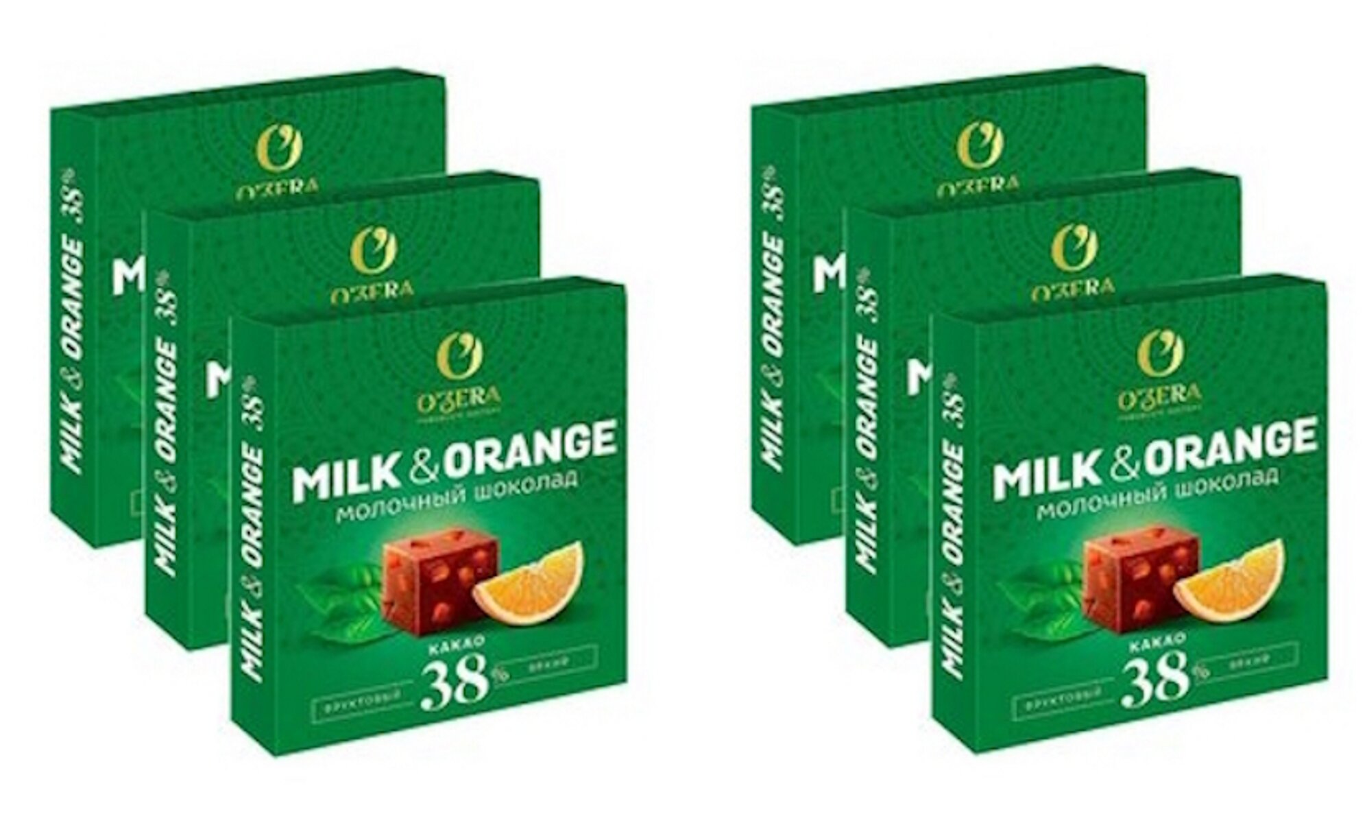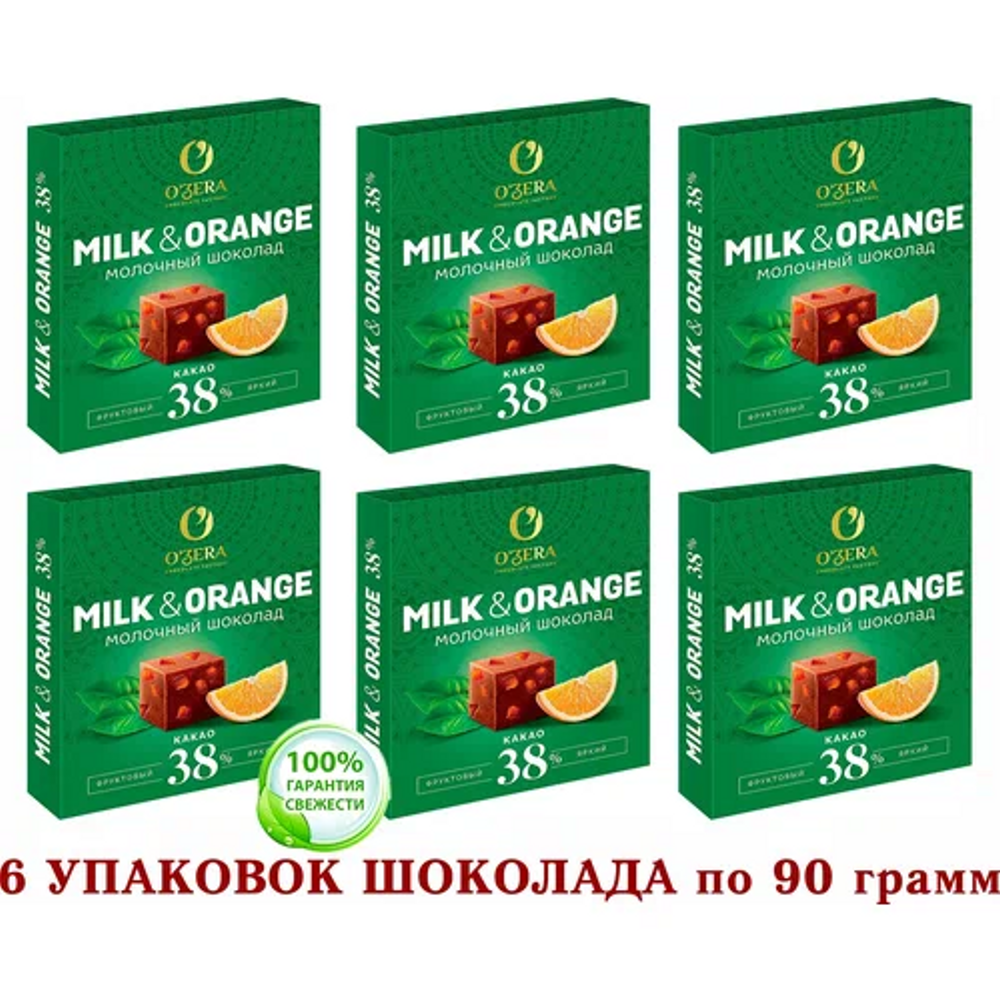 Купить Шоколад молочный OZera Milk & Orange 38%, 6 упаковок по 90 г, по 12 кубиков в каждой упаковке