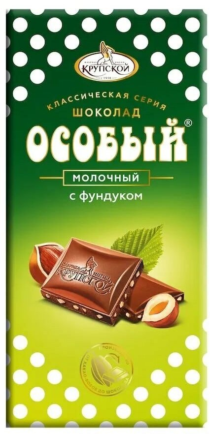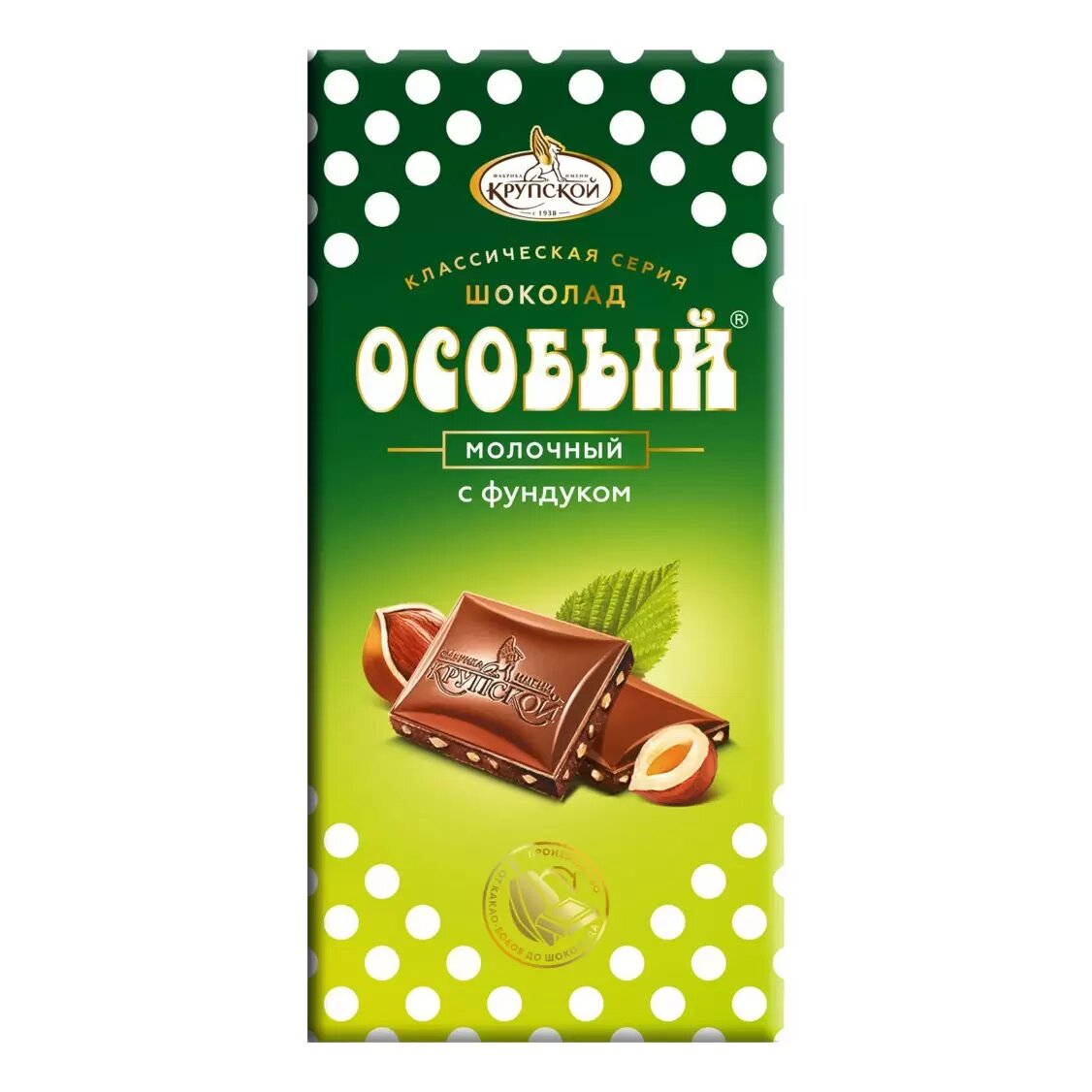 Шоколад Особый молочный с фундуком 90г/КФ Крупской интересное:
