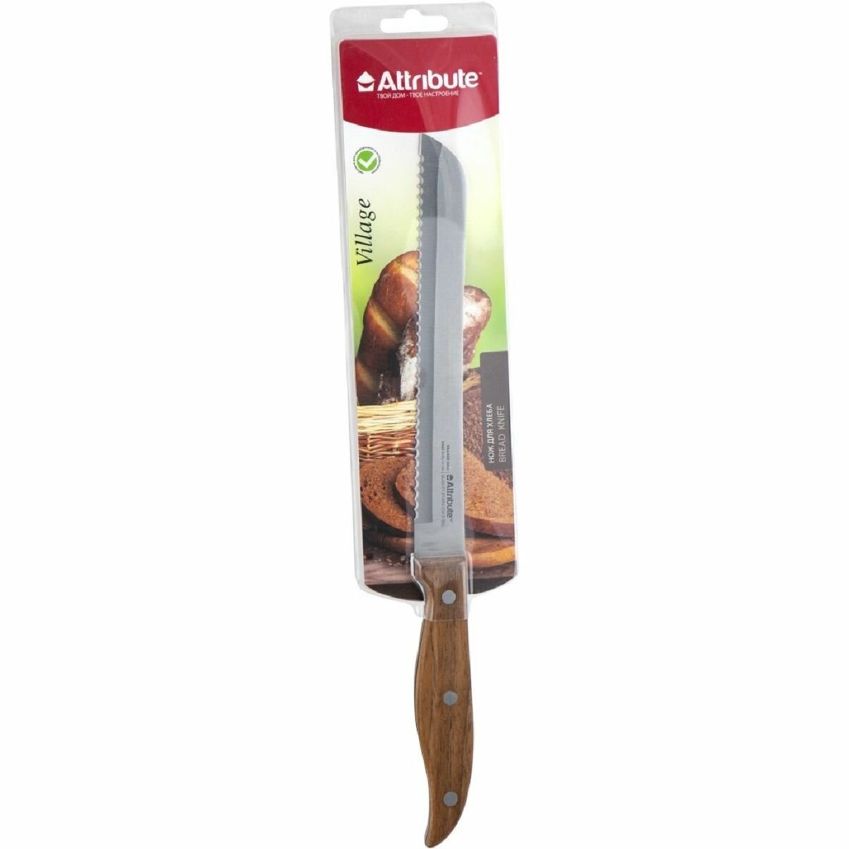 Нож для хлеба ATTRIBUTE "VILLAGE" 20см, нержавеющая сталь/дерево