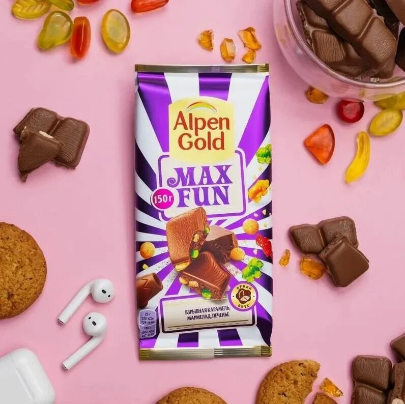 Шоколад Alpen Gold Max Fun 150 грамм 4 вкуса по 1 штуке каждого интересное: