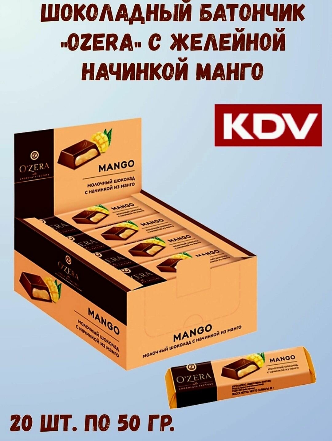 OZera, шоколадный батончик Mango, 50 г (упаковка 20 шт.) интересное: