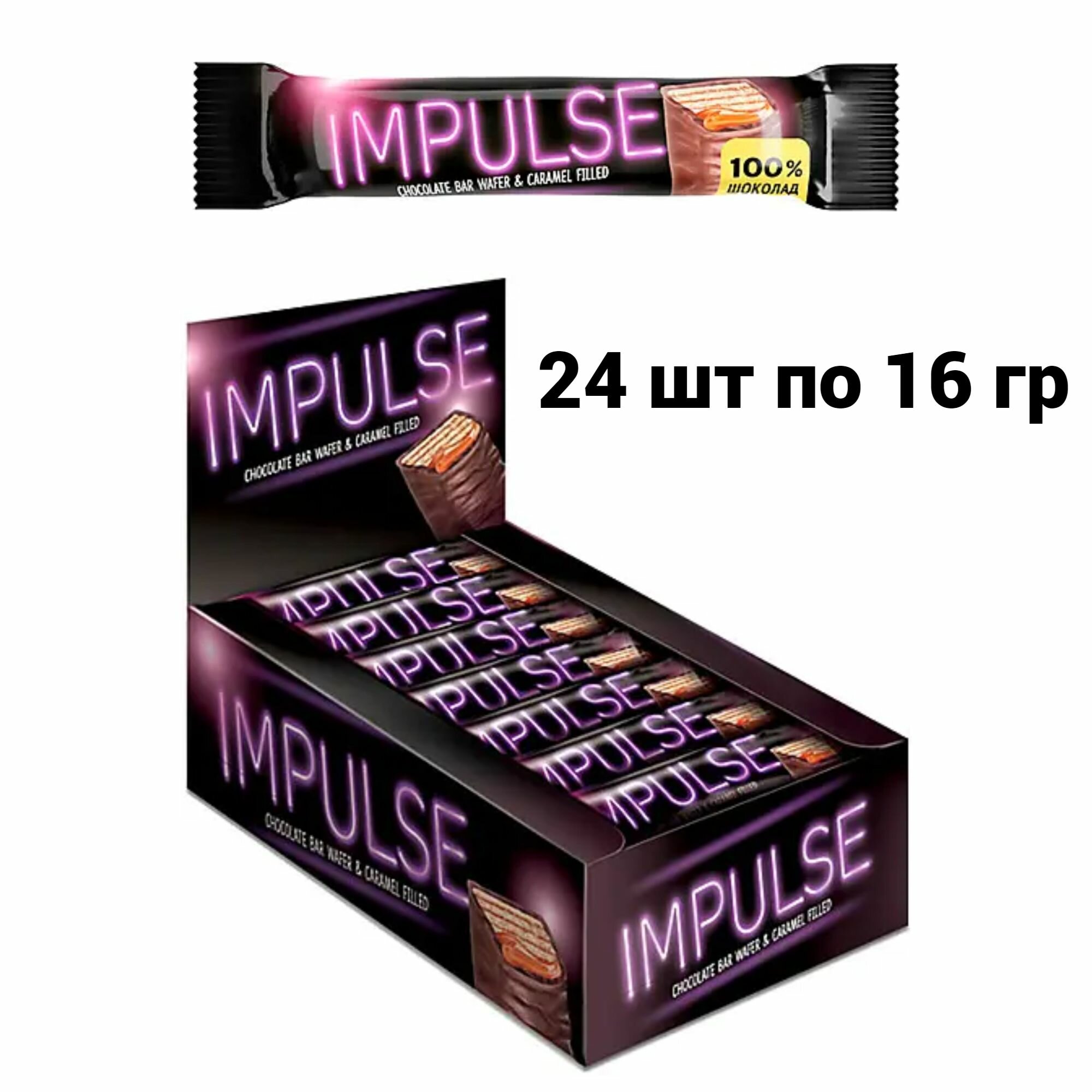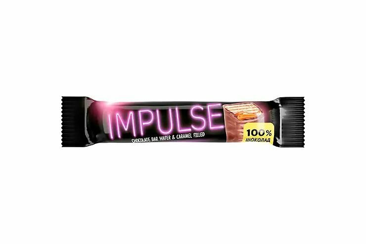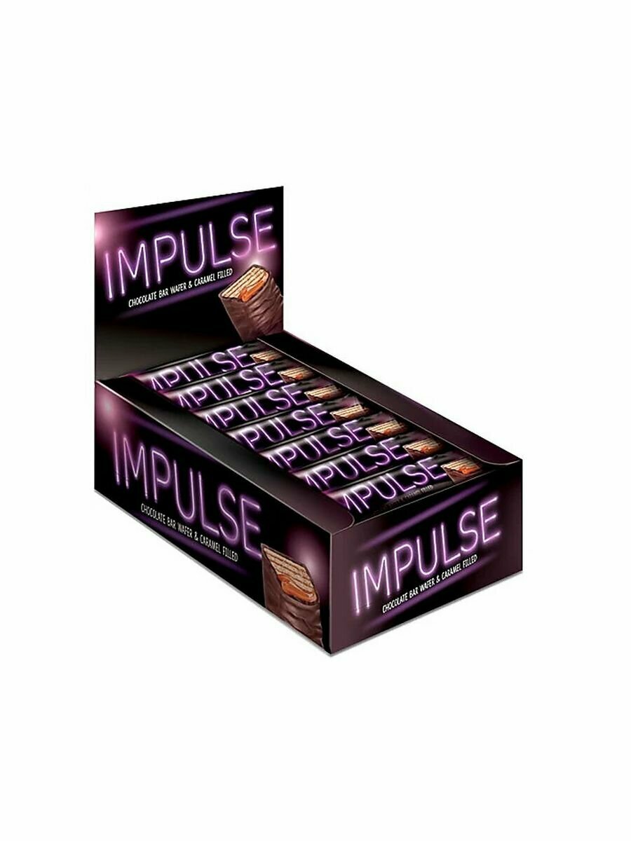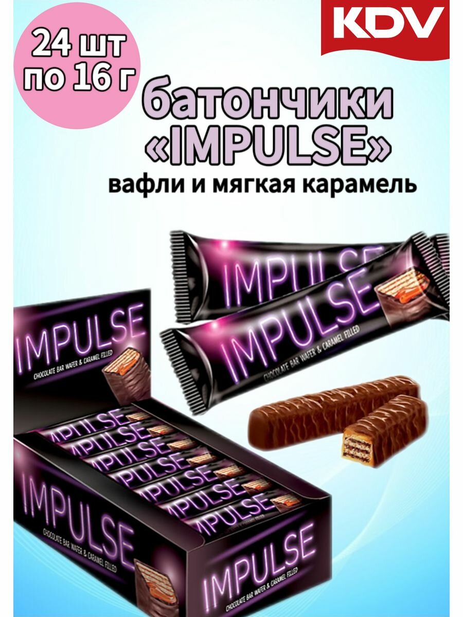 Батончик шоколадный КДВ "IMPULSE" с хрустящей вафлей в карамели и молочно-шоколадной глазури, 24 шт (384 гр) , Яшкино интересное:
