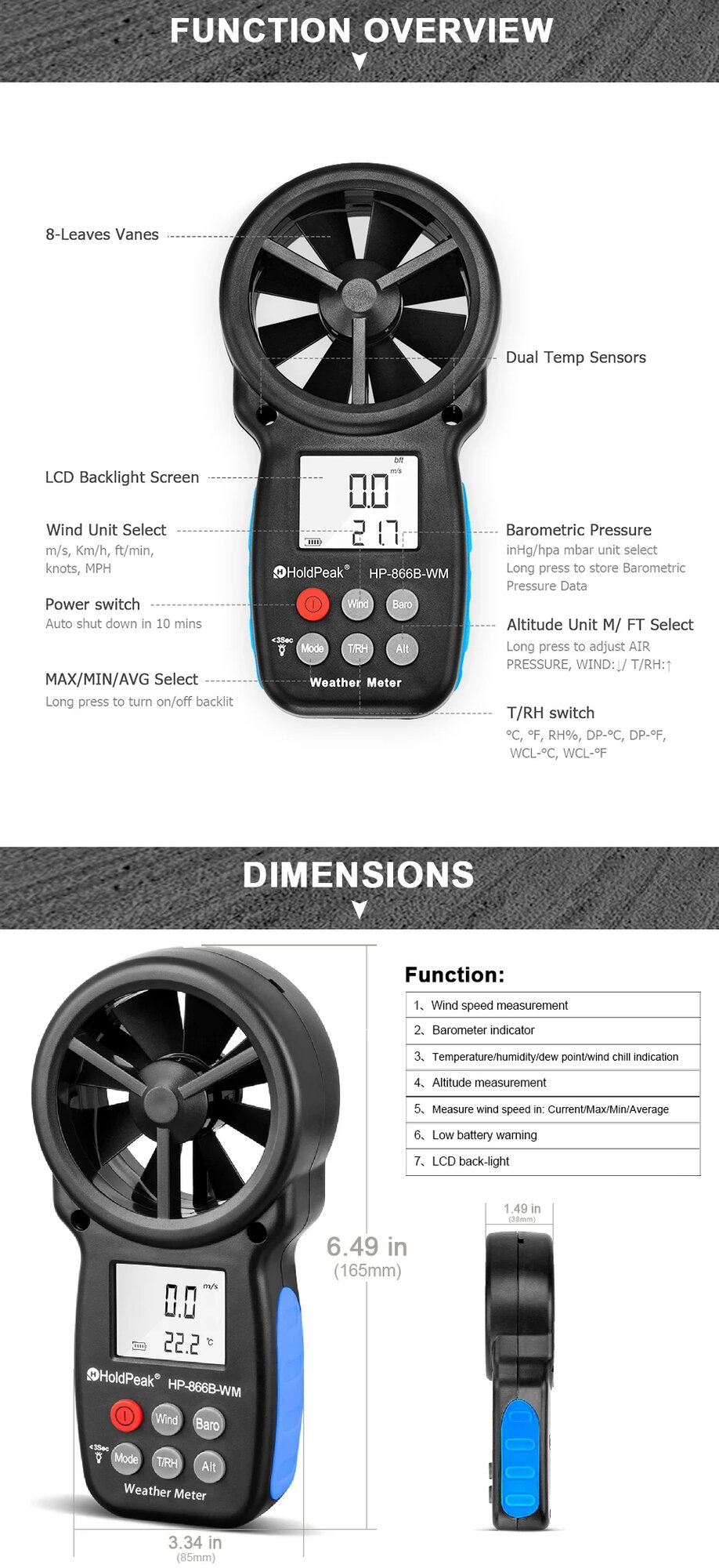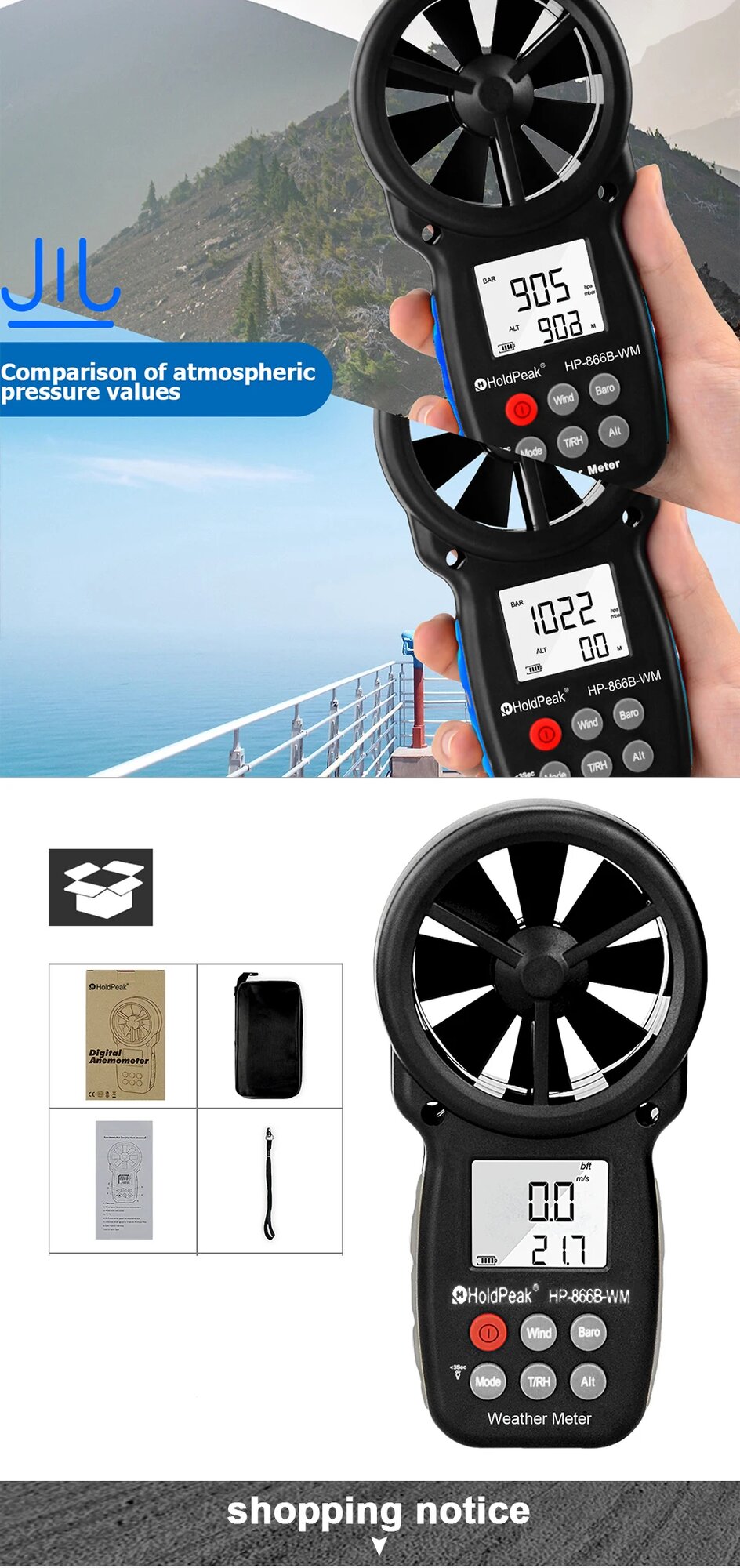 Ручной анемометр HoldPeak HP-866B-WM