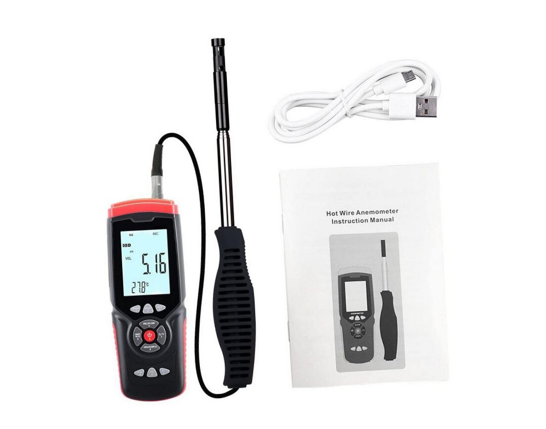Купить Термоанемометр с обогреваемой струной GT8911-HT (black) (Q21133GT8) для измерения скорости движения воздуха, прибор для измерения скорости ветра
