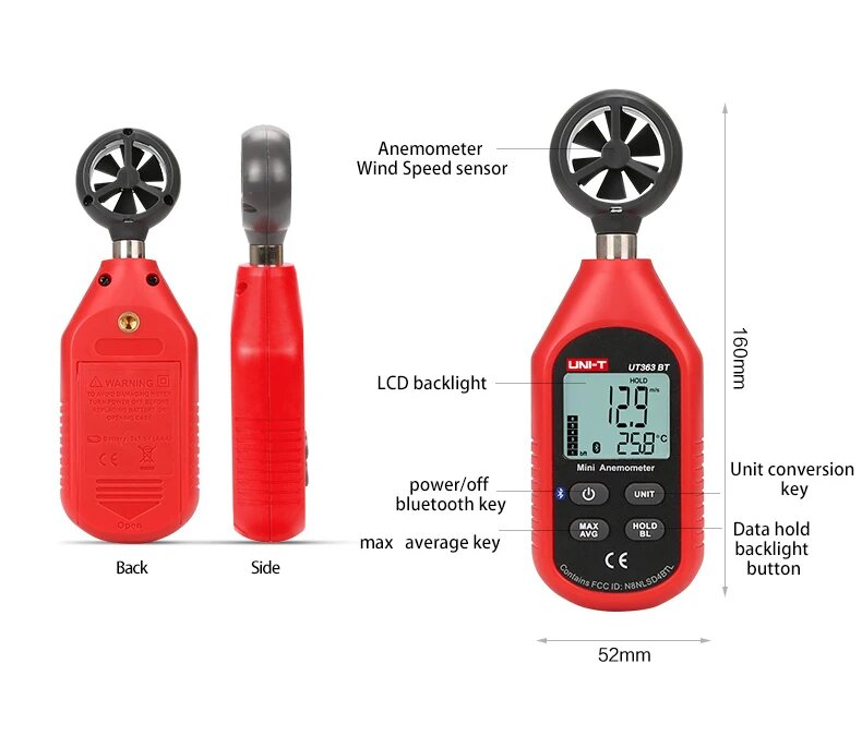 Мини цифровой Bluetooth Анемометр UNI-T UT363BT