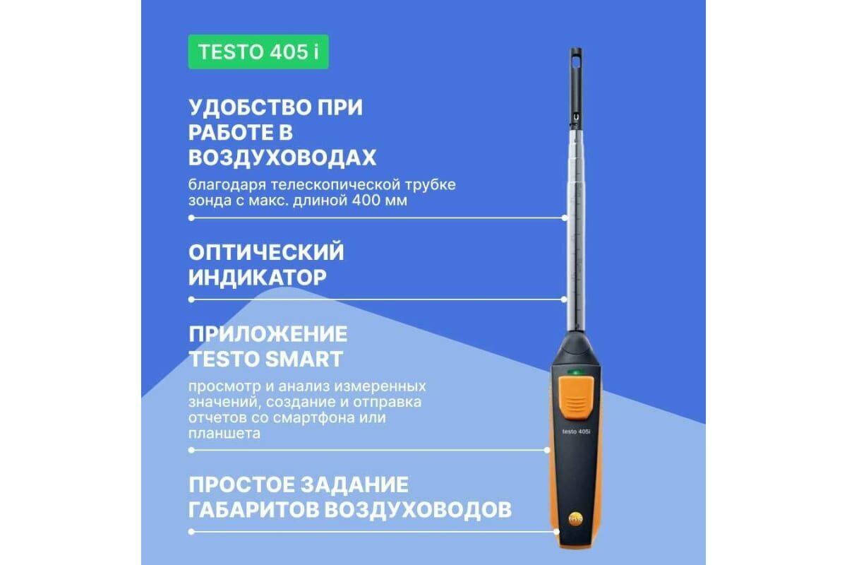 Смарт-зонд Testo 405 i - Термоанемометр с Bluetooth, управляемый со смартфона/планшета