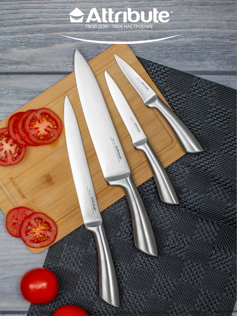 Нож attribute steel 20см поварской нерж.сталь