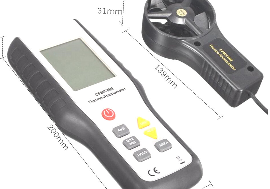 Термоанемометр цифровой датчик скорости ветра - HTI-9819-HT (9V) (A15800ET), тестер скорости. CFM/CMM thermo-Anemometer. Выносная крыльчатка.