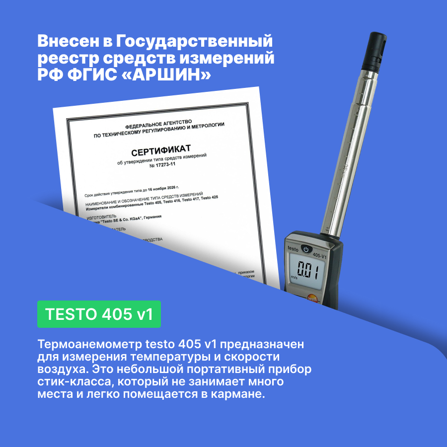 Термоанемометр стик-класса testo 405 V1 интересное: