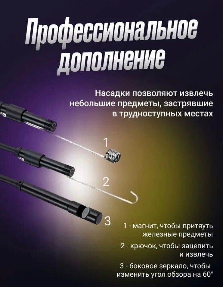 Видеоэндоскоп 3 в 1/ Эндоскоп 2 метра для Андроид интересное: