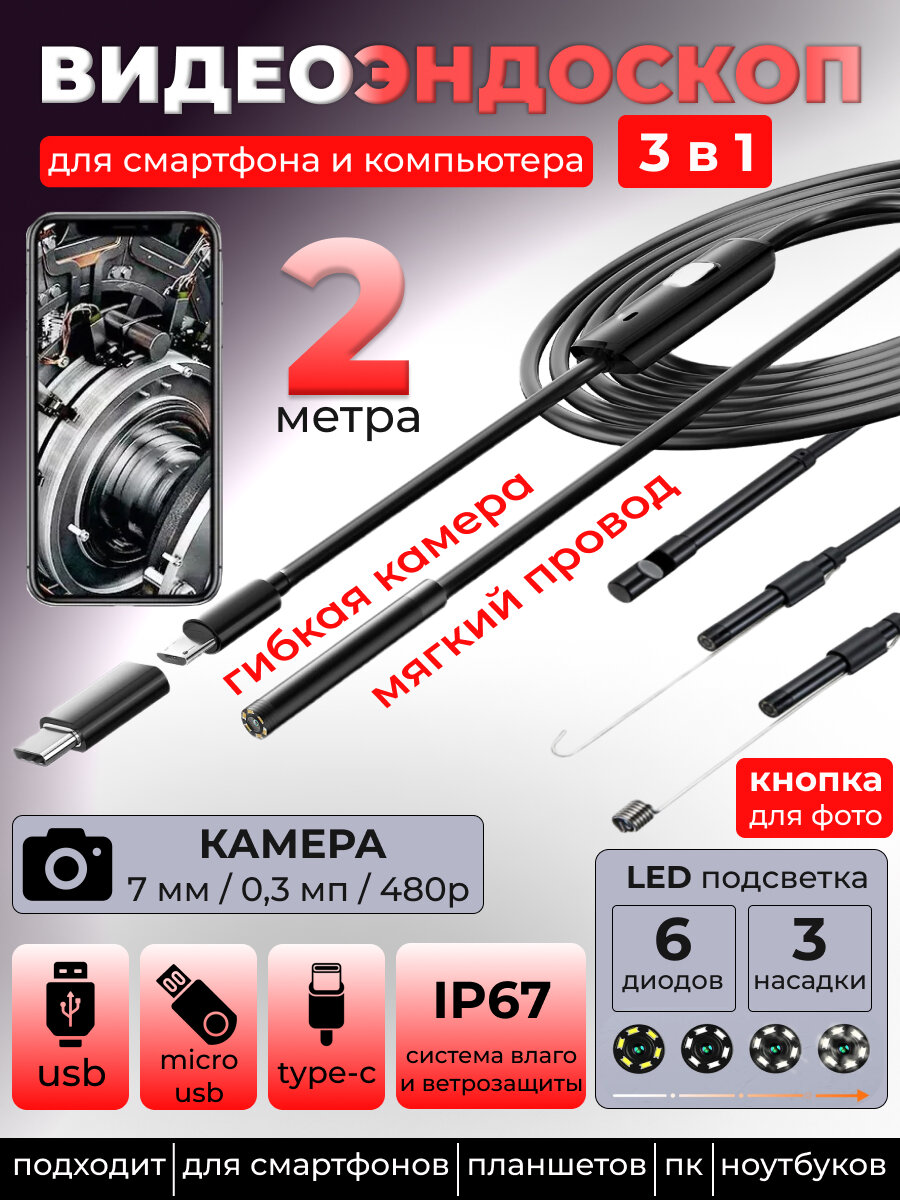 Ниже Вы можете прочитать отзывы на Видеоэндоскоп Гибкая камера TYPE-C 2 м, ознакомится с подробными характеристиками, посмотреть интересные обзоры и фотографии на Видеоэндоскоп Гибкая камера TYPE-C 2 м.