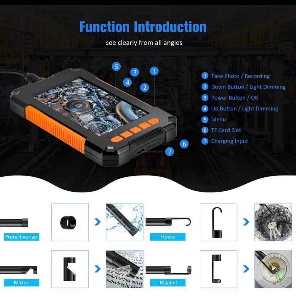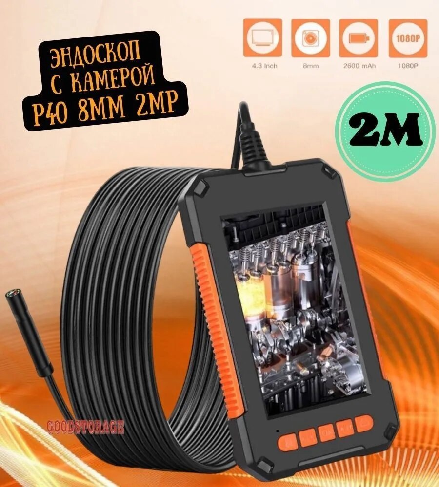 Эндоскоп с камерой P40 8 мм 2MP 2 метра, промышленный бороскоп с экраном 4,3 дюйма, оранжевый интересное: